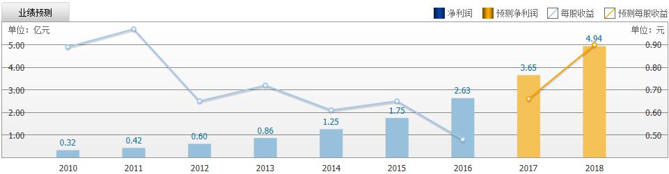 截至2017年8月27日,共有 15 家機(jī)構(gòu)對(duì)美年健康2017年度業(yè)績(jī)作出預(yù)測(cè),預(yù)測(cè)每股收益 0.22 元,較去年同比增長 57.14%, 預(yù)測(cè)凈利潤 5.27 億元,較去年同比增長 55.61%。